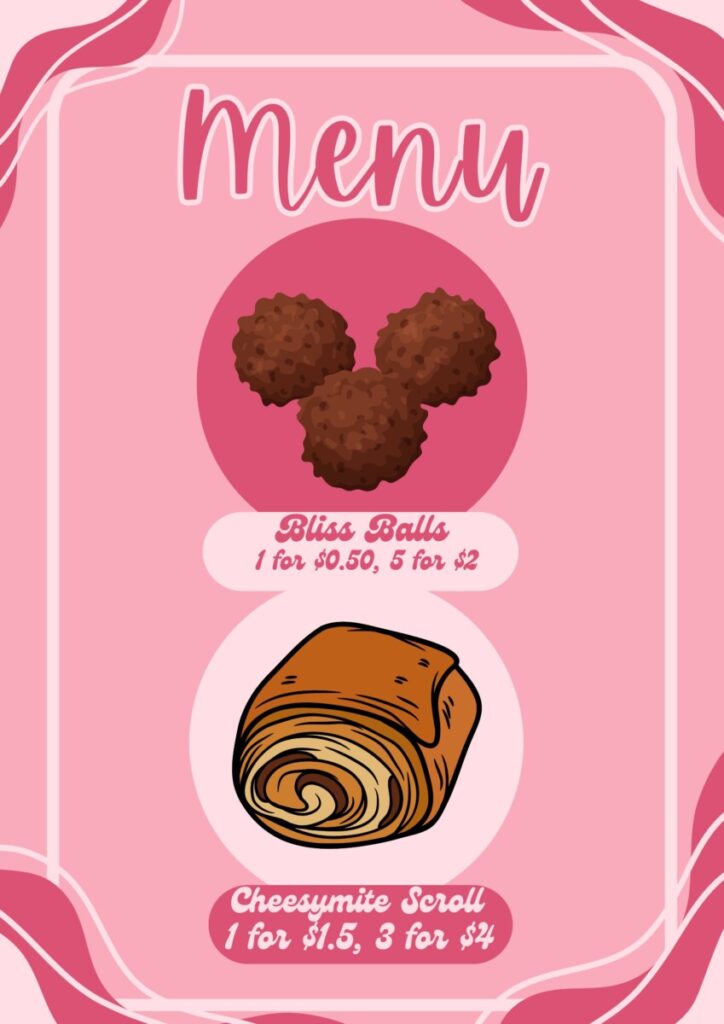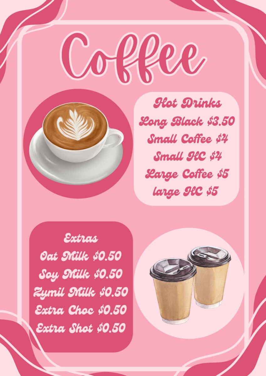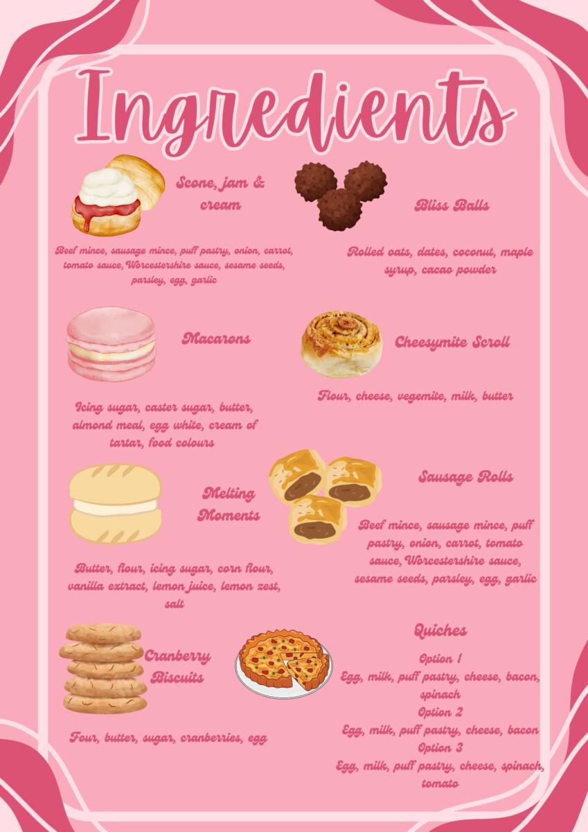 The café will be selling barista-made coffee and hot chocolate and a variety of amazing treats created by the Food and Hospitality students. This will include items such as mini quiches, sausage rolls, vegemite and cheese scrolls, scones with cream and home-made jam, macarons, bliss balls and a variety of tasty biscuits. Get in quick as these home-made items will sell out quickly.
