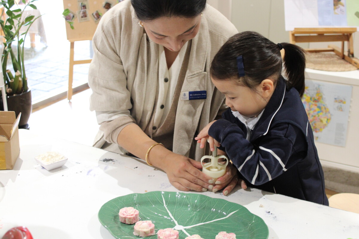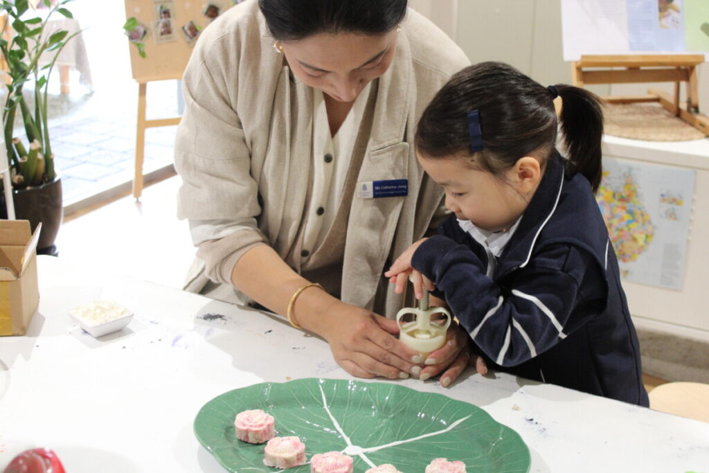 Another highlight of the program was our Mid-Autumn Festival Celebration. The children enjoyed listening to ‘A Big Mooncake for Little Star’ by Grace Lin — a beautiful story that opened up conversations about family traditions, the moon, and cultural celebrations. Inspired by the story, the children took part in a hands-on cooking experience, making their own mooncakes using cookie dough and traditional wooden moulds. They also made their own lanterns to celebrate the Mid-Autumn Festival, exploring patterns, colours, and shapes as they created bright, festive decorations. These experiences helped children appreciate cultural diversity and express their creativity in joyful ways.
