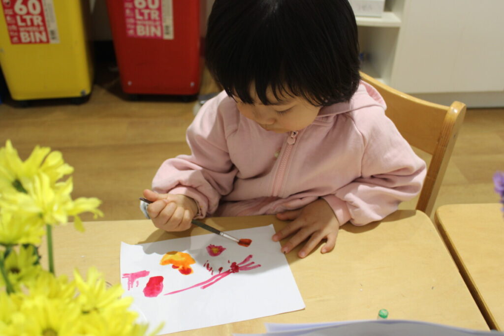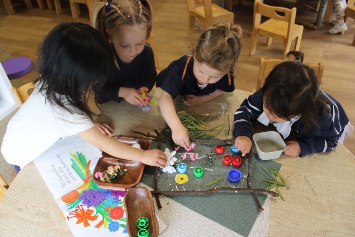 These experiences were enriched further through drawing and painting, inspired by observations of real flowers, and through loose parts play, which encouraged the creation of collaborative flower garden frame displays. These activities not only supported fine motor development and creativity but also encouraged observational skills and an appreciation for the natural world.