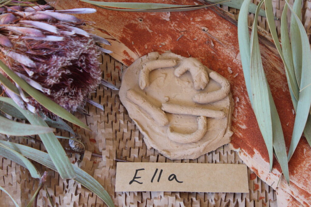 Through working with tactile clay, the children have been expanding their understanding of Kaurna symbols, using them as powerful modes to express and represent important people in their lives, including friends and family. They have practised and refined various creative techniques—rolling, pinching, patting, tapping, squeezing and pressing—to create straight, curved and rounded shapes. These processes not only support fine motor development, dexterity and hand strength, but also nurture problem-solving skills and resilience. What happens when the clay breaks? “Just use a little bit of water,” explains Sam from Pathway Hallett.