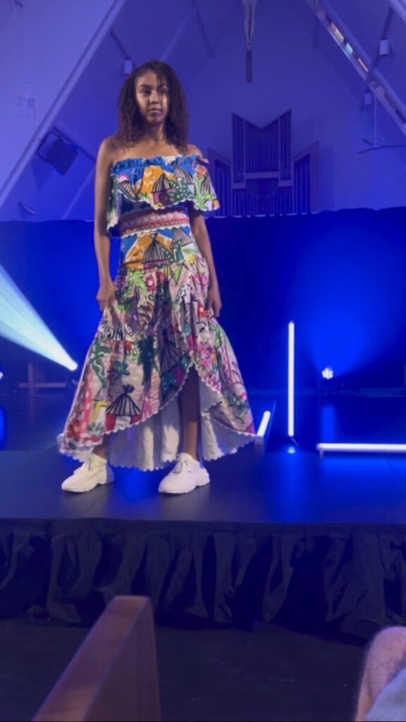 A huge thank you to the Performing Arts Department team – Ella, Scott and Ms Kitching – for their help with the lighting, music, and set design, and for ensuring the smooth running of the show. Thank you to Year 10 Cleo Conor and her younger sister Sasha for filming and editing. We also appreciate the models from different schools, Mr Searle for his support and direction as a CAS supervisor, Ms Sutton and Ms McGregor for their assistance. A special thank you to Malaika’s mum for all the support during the entire process of the project. Lastly, a heartfelt thanks to the four companies, Iris & Wool, Karma East, Binny and Jeimont Sport that supported this project.