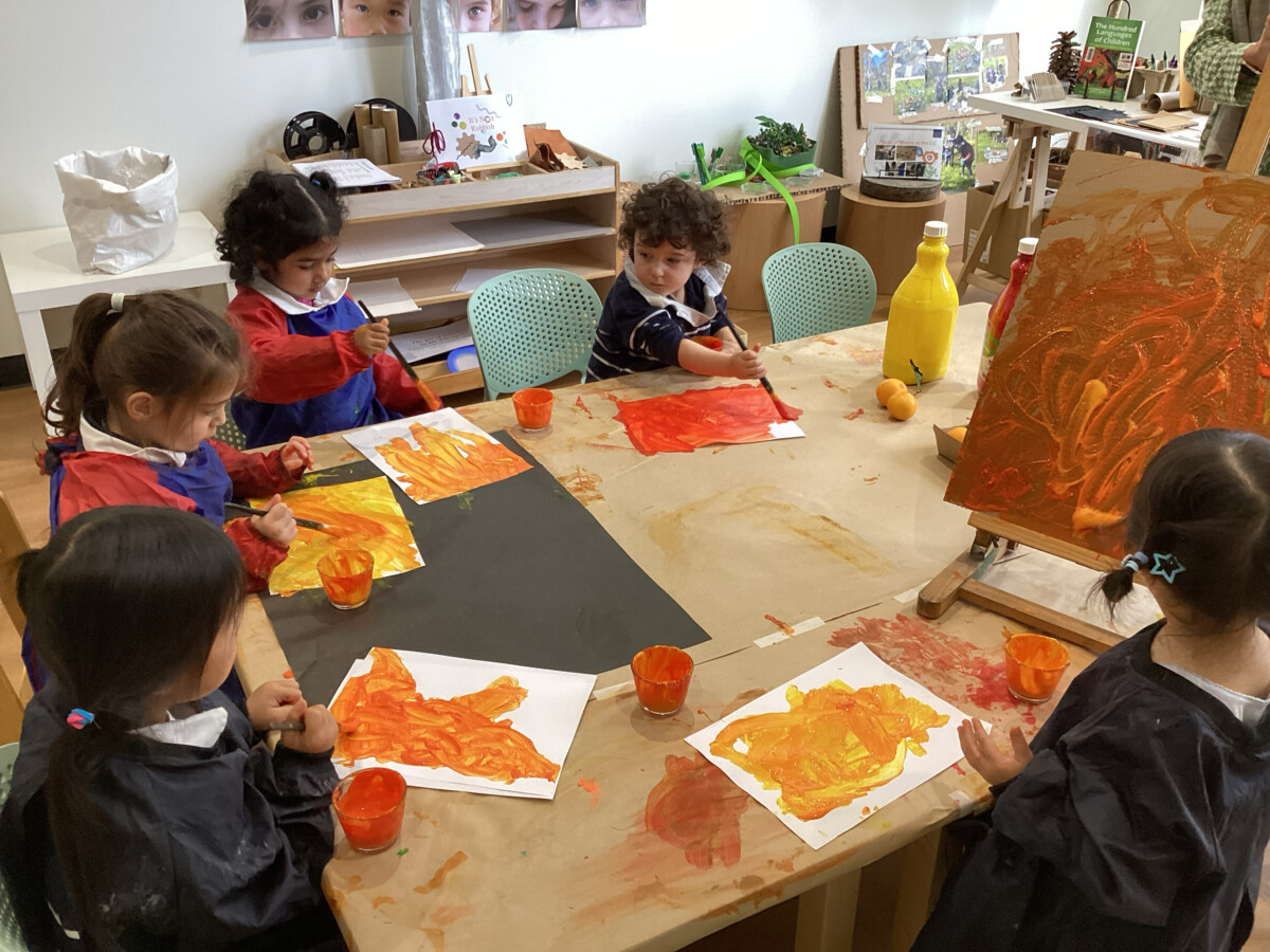 Wellbeing time has been a highlight, where we gathered to enjoy juicing oranges and warm cups of orange tea. These quiet, shared moments reminded us that taking care of our bodies also nurtures our sense of connection and belonging. In the ELC community garden, the children delighted in discovering vibrant colours as noticed in our focus book ‘Planting a Rainbow’. The children documented their thinking through painting, mark making, loose parts, playdough and light exploration.