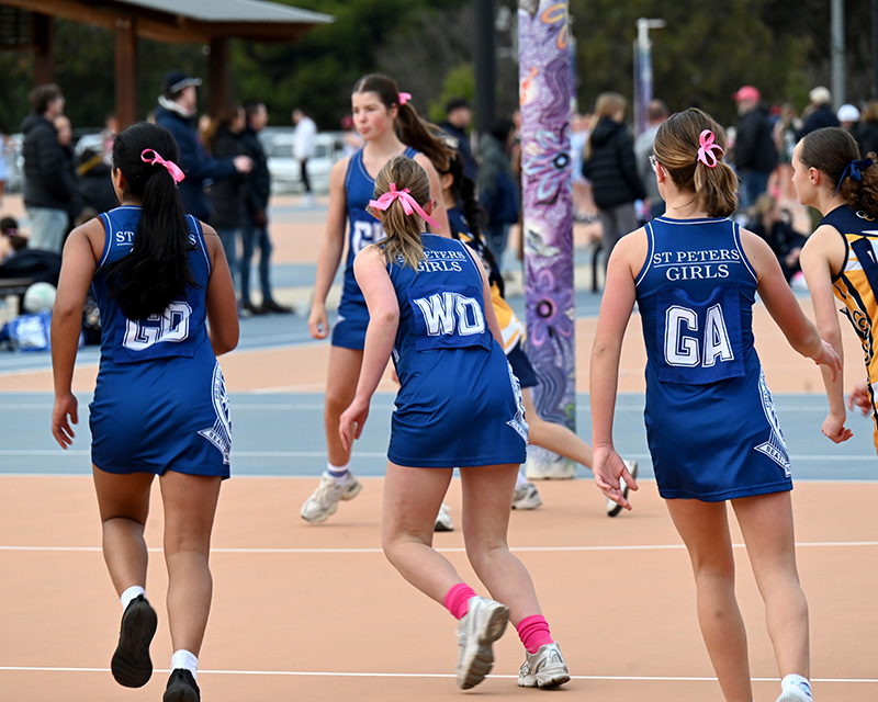 During Round 8 of IGSSA Sport, Saints Girls participated in Pink Round. Pink Round unites schools across South Australia in a vibrant show of support. This heartfelt initiative raises awareness and vital funds for Breast Cancer Network Australia (BCNA), which provides essential services and support to individuals and families affected by breast cancer across the country.