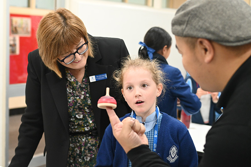 We welcomed leading toymaker, Simon Till, from Mecruious with his team, David and John. Simon, originally from Germany, moved with his young family to Australia to pursue his passion for making values-based, sustainable toys. It was wonderful to see the students’ interactions with Simon’s team and the critical and creative thinking they used at the toy stations. Simon’s presentation included videos of his toymaking travels through Europe, as well as child-friendly discussions on sustainability, toymaking, and business modelling. He shared his definition of sustainability as “helping the earth stay happy and healthy so that people, animals and plants can live happily now and in the future.”