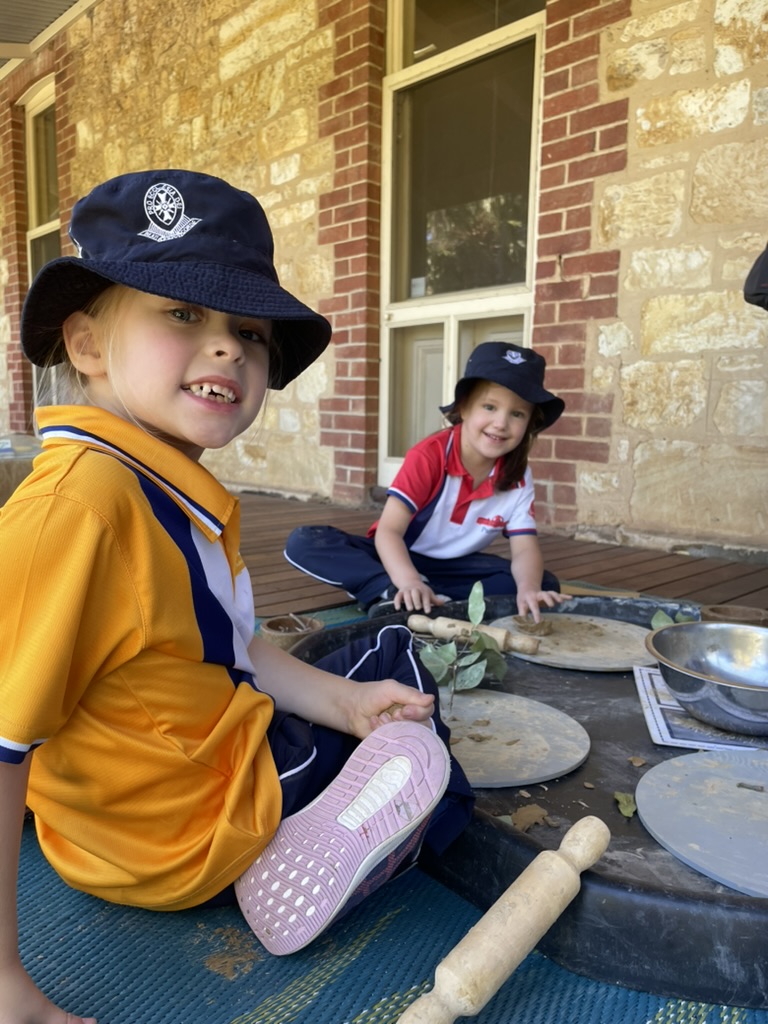 On the way back to Wittunga House, we noticed different plants and flowers. In the garden were three play provocations set-up to explore: mud kitchen clay modelling and loose parts play. This 90-minute nature immersion invited our nature explorers to engage in play-based discovery, creative expression, and meaningful connections with nature. The girls mixed mud tea and carefully created mud cakes garnished with crunchy, colourful leaves, scented flowers and herbs. They presented their creations on beautifully presented platters, cake stands and tea cups. The loose parts play offered an open-ended story-telling opportunity to build and balance with wooden objects of different sizes and colours. The girls loved rolling and designing with the clay to make their own creature creations which they brought home as a memory of this amazing experience.