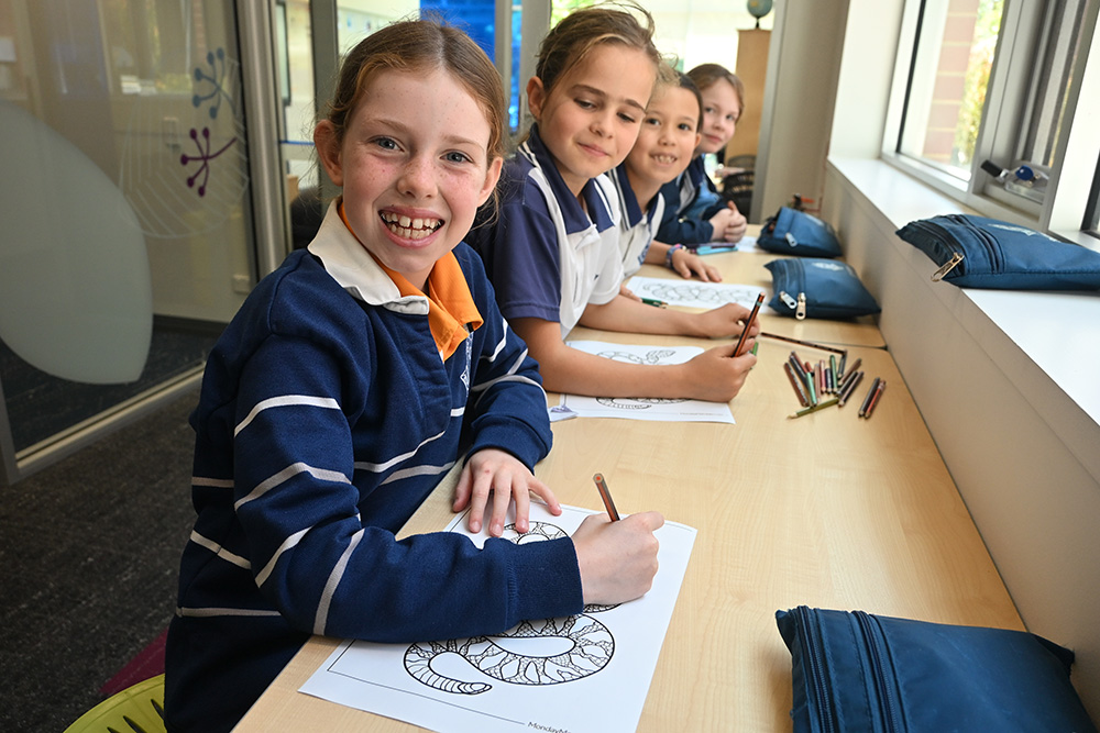 On Friday, we worked with the Year 3 cohort to teach them the Dreamtime story, The Rainbow Serpent, to deepen their understanding of Aboriginal culture and stories. We began by watching a video that tells the story of protecting the totems and keeping peace, and then did a colouring activity, which allowed the children to colour in snakes of their own. Upon reflection, we are so thankful for this insightful opportunity, which also taught us more leadership skills aimed at a younger community. We were so thrilled by the comments some of the students made: