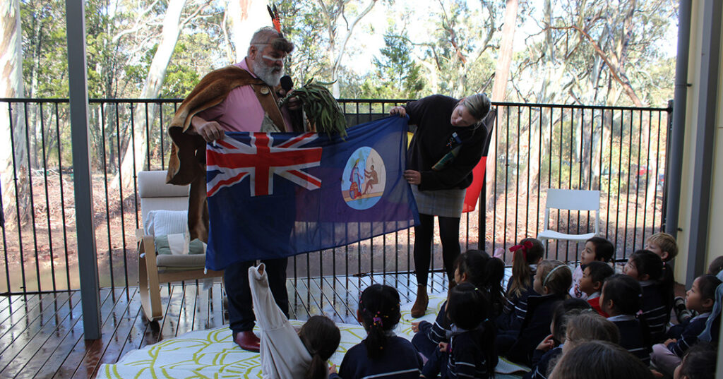 Although the weather prevented us from walking through Ferguson Conservation Park, we were able to engage in some storytelling. In Learning Community 1, children engaged with the story Tiddalick the Frog, shared by Ms Nell Tierney using puppets to bring the tale to life. This Dreaming story prompted rich discussions and supported children in exploring concepts of responsibility, fairness, and respect for Country.