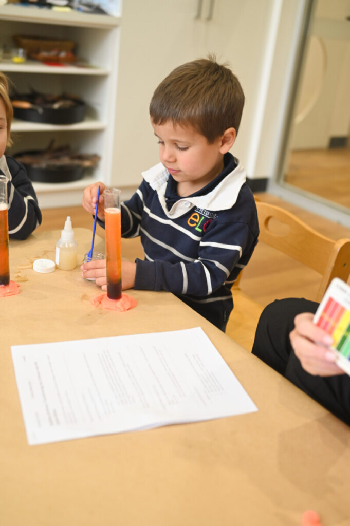 Children delighted in chemical reactions that transformed ordinary substances into vibrant rainbows, observing how natural colours shift when combined with different elements. This hands-on chemistry linked directly to nature’s processes, fostering both scientific understanding and aesthetic appreciation. With magnetic wands, children investigated the invisible forces of magnetism. They were invited to hypothesise, test, and reflect, making meaningful connections between their discoveries and the wider world, such as the Earth’s magnetic field guiding bird migration.