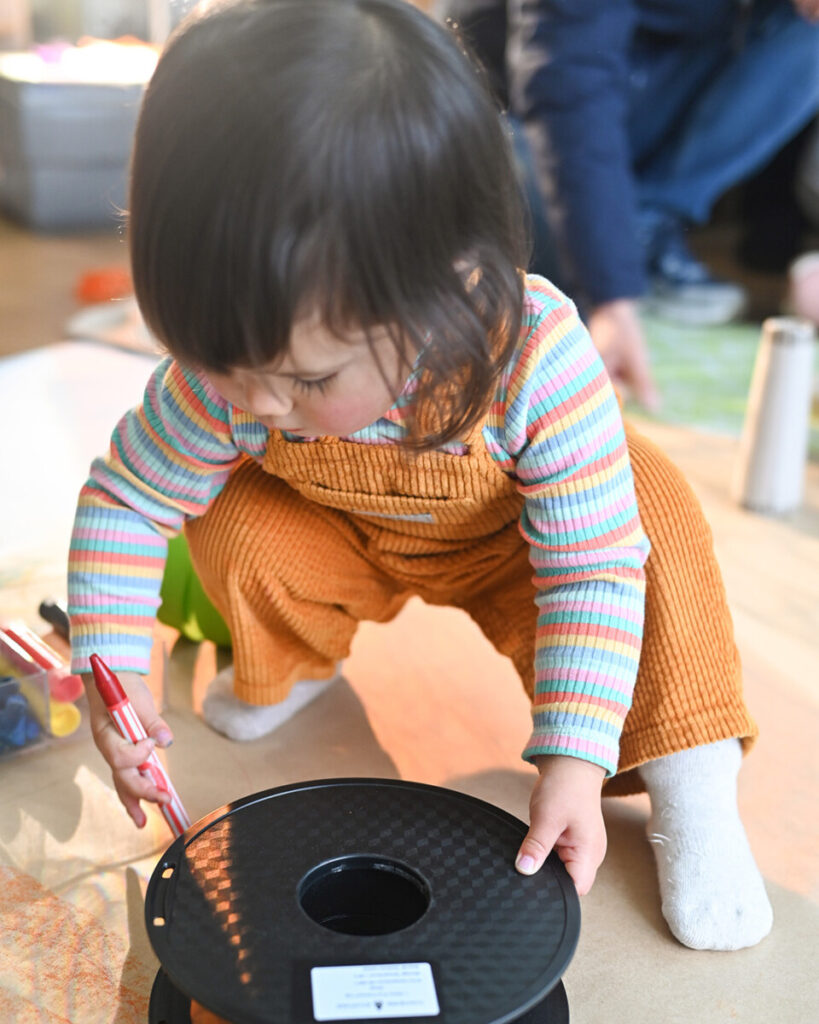 Children moved freely, engaging with surfaces, tools, and their own bodies—discovering how movement, touch, and creativity come together in expressive encounters. Families joined in the joy of discovery, witnessing how the environment becomes a co-learner in each child’s journey.