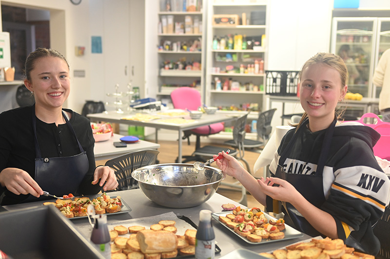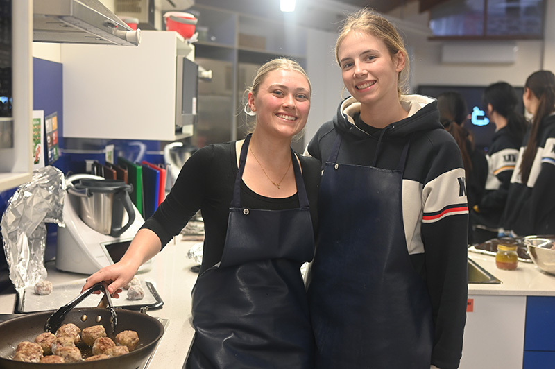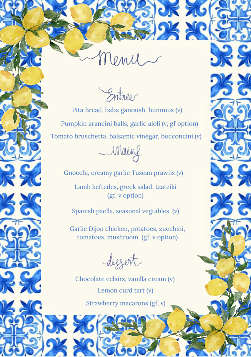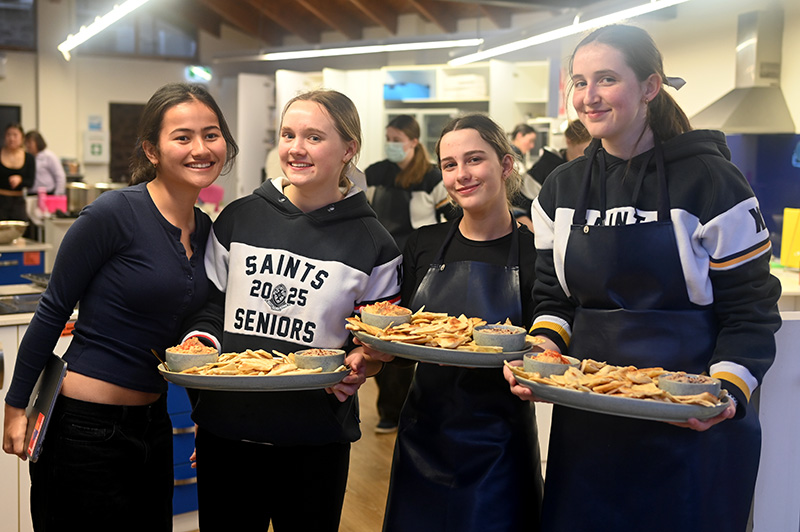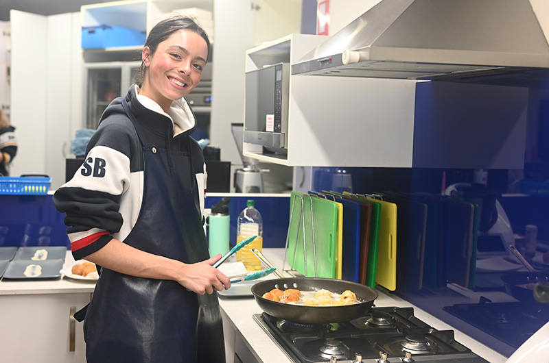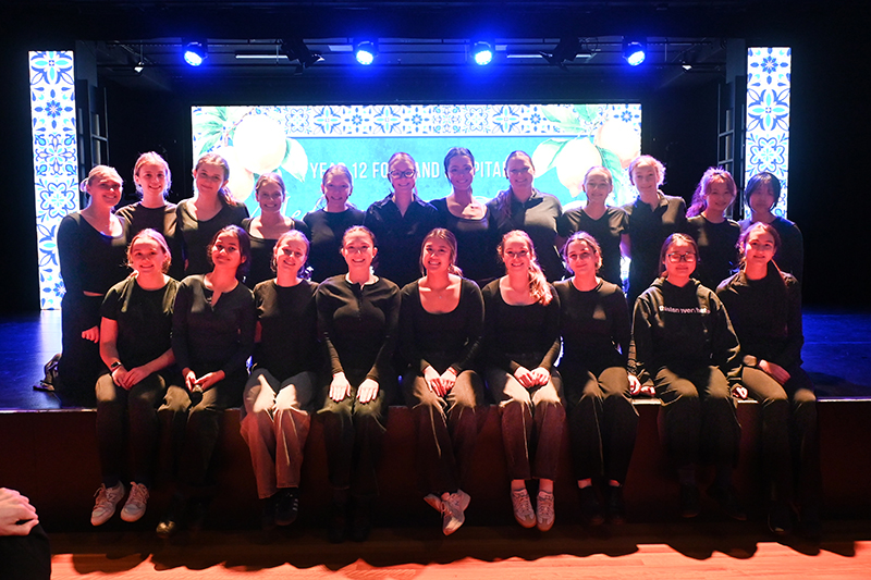 In week 4, the Stage 2 Food and Hospitality students enthusiastically hosted their final group practical activity. Collaboratively the classes organised and presented a Mediterranean-inspired dinner, showcasing vibrant dishes from Spain, Italy, France, and the Middle East. Each student ensured high quality presentation and flavour of their dish, which was served in a shared plate format. The dinner took place in the Jeffrey Lynne Performing Arts Centre, which we transformed into an inviting restaurant setting. The Food and Hospitality classes contributed to every aspect of planning and execution, from selecting the theme, refining recipes, developing menus, to choosing optimal plating. We collaborated closely to ensure the night ran seamlessly. Our menu featured dips with pita bread, arancini, bruschetta, paella, prawns with gnocchi, keftedes, French chicken, and a range of French desserts. This event not only enabled us to demonstrate our culinary and time management skills, but also deepened our understanding of event planning, team work, and hospitality service whilst catering for a large group. The night was a resounding success, and we all enjoyed working together to make it happen.