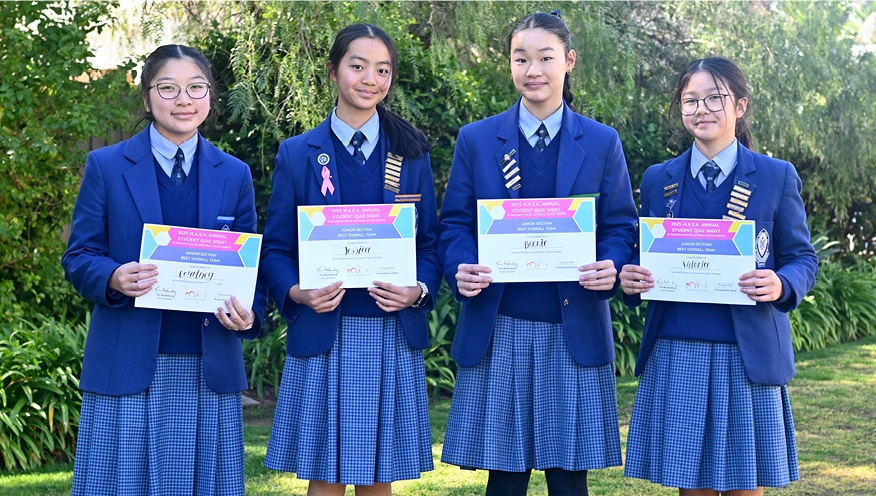 One of our Year 8 teams, comprising of Jessica Dong, Courtney Fu, Victoria Hii and Bonnie Qu, were the overall winners of the Junior Section having won the Mathematics round and placing second in the General Knowledge round. The second-place team in the Junior division were another Year 8 team from Saints – what an impressive bunch! The Senior Teams did an amazing job against worthy opponents, their general knowledge, problem solving skills and team work was impressive.