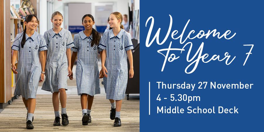 We are very excited to invite our Year 6 families to the Year 7 Welcome Evening on Thursday 27 November, from 4pm – 5.30pm on the Middle School Deck.
