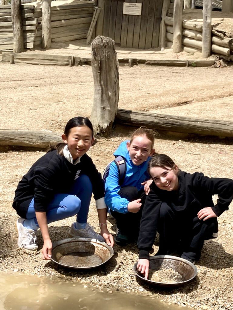 On our second day, we left early and drove to Ballarat for an in-depth study of the Gold Rush, tightly connected to the Year 5 unit of inquiry. The girls experienced underground mine tours, walked the diggings and the Chinese camp, visited shops of the era, and saw gold being smelted. As part of the girls’ inquiry, they spent time interviewing people of the goldfields to learn about the challenges faced in this era. After visiting Sovereign Hill, the girls visited the original site of the Eureka Stockade- a moving experience for all.