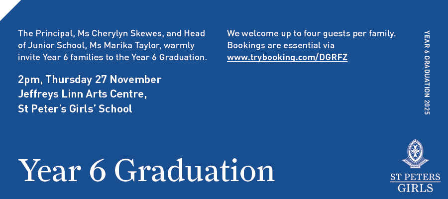 We are very excited to invite our Year 6 families to the Year 6 Graduation on Thursday 27 November, from 2pm in the Jeffreys Linn Arts Centre.