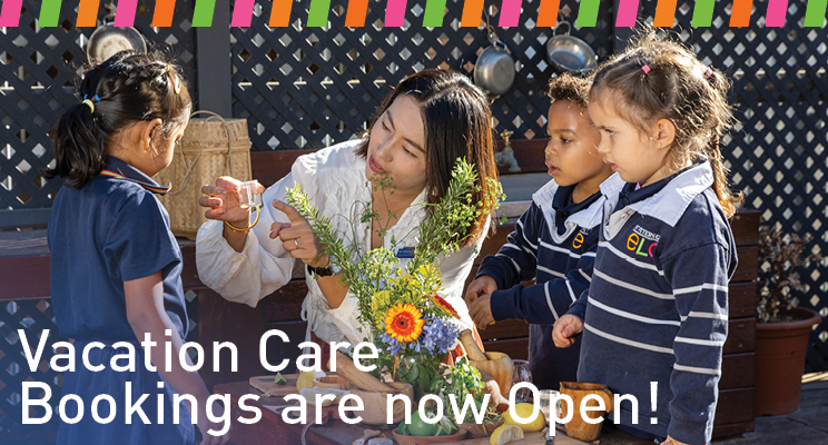 As ELC Vacation Care staffing and catering are based on bookings, please make your bookings by 5pm, 26 June 2025 (Week 9). Due to limited spaces during ELC Vacation Care, please book early! Late bookings and changes after this date will incur a late booking fee.