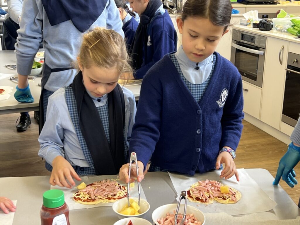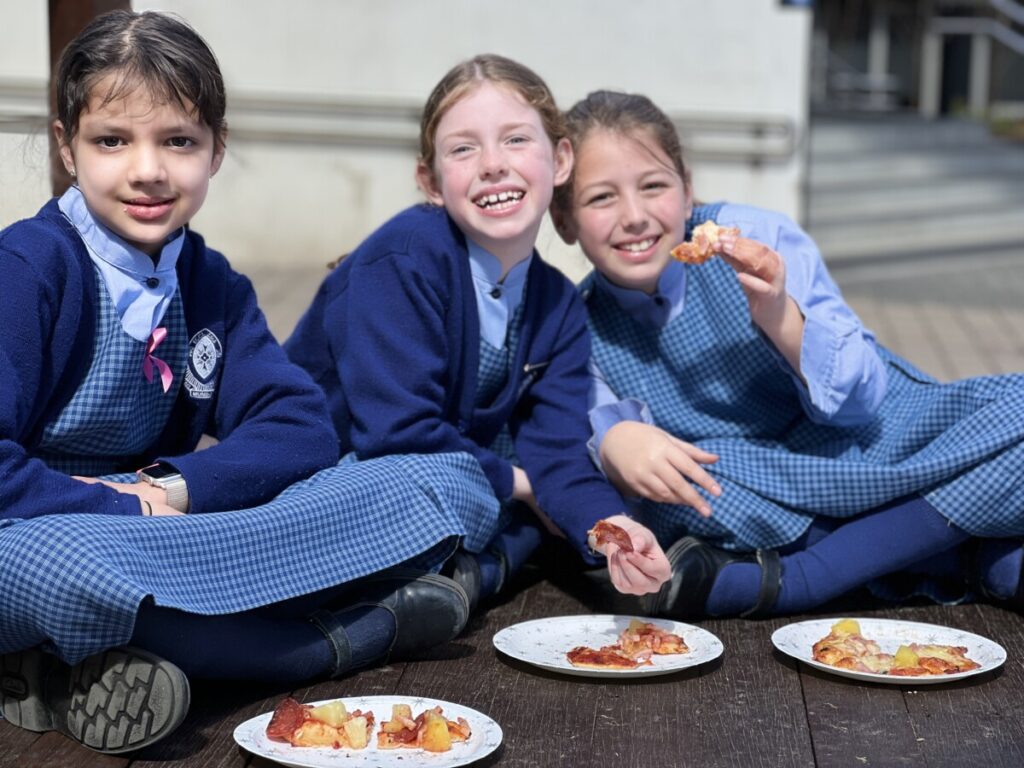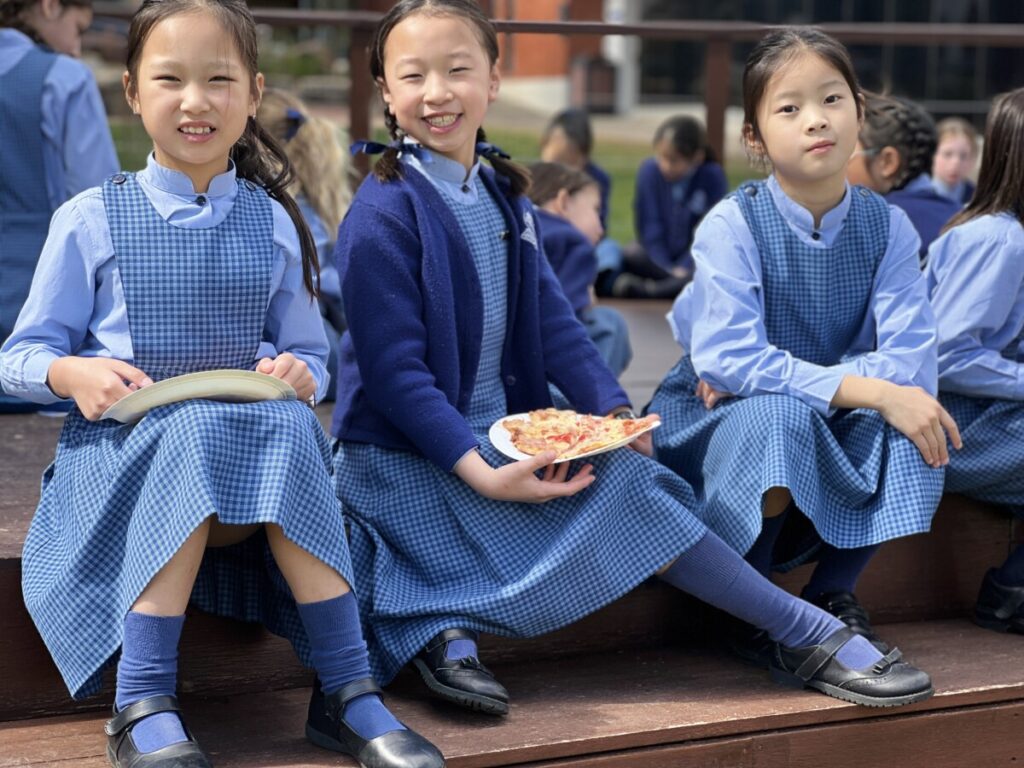Our Year 3 girls had a wonderful opportunity to work with our Year 11 Food and Hospitality students to make pizzas. Our Senior girls visited the classrooms first to talk about healthy choices and plan some delicious toppings for our pizza-making. We talked about balanced food groups and the joy of trying new things. We then gathered together in the Food Tech kitchen to roll the dough, spread the sauce and arrange the toppings on our very own creations. After they were cooked, we spent time in the sunshine together eating and enjoying the beautiful experience of sisterhood. Thank you to Jenni Manson and her Year 11 Food Tech students for a fabulous morning.
