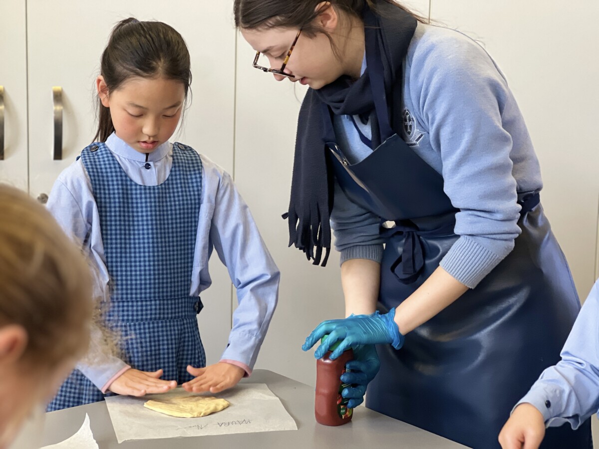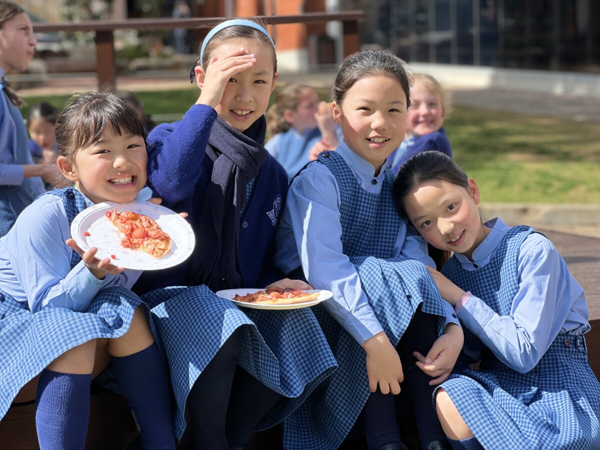 Our Year 3 girls had a wonderful opportunity to work with our Year 11 Food and Hospitality students to make pizzas. Our Senior girls visited the classrooms first to talk about healthy choices and plan some delicious toppings for our pizza-making. We talked about balanced food groups and the joy of trying new things. We then gathered together in the Food Tech kitchen to roll the dough, spread the sauce and arrange the toppings on our very own creations. After they were cooked, we spent time in the sunshine together eating and enjoying the beautiful experience of sisterhood. Thank you to Jenni Manson and her Year 11 Food Tech students for a fabulous morning.