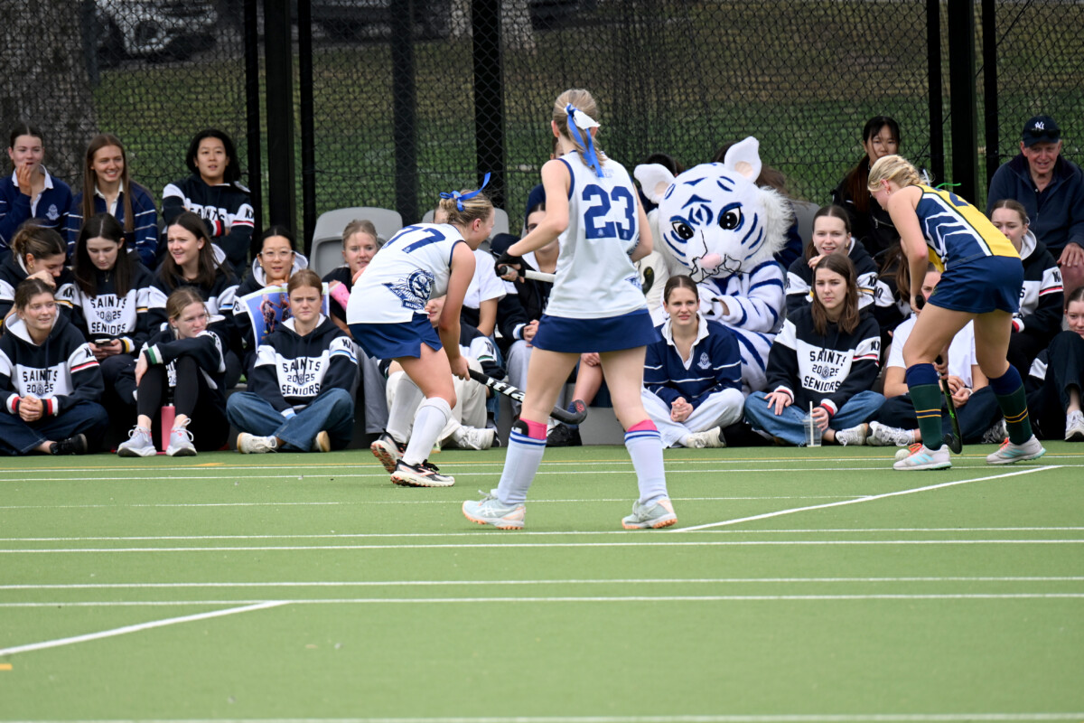 The Open A Hockey team finished off their season with a Grand Final against Pembroke for the second year in a row. The girls fought hard, defended strongly and played with the energy and talent they had brought all season. Unfortunately, Saints did not win, but it was so great to see how far the girls have come as hockey players and as a team. The support from the crowd was a stand out, helping the girls play with a sense of pride for the School community. A special shout-out to Olivia Park, Winnie Vartuli, Sophia Langley, Ava Field and Leah Huynh, who, along with me, played our last school hockey game ever!