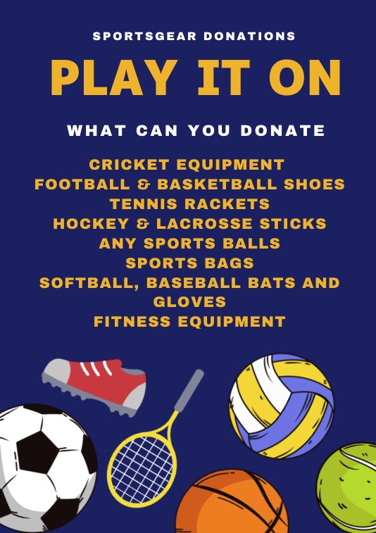 Play It On is a not-for-profit social enterprise that provides subsidies to children from families who are financially challenged. We are hosting a donation bin, located outside the Sports Office, until Friday 26 September in support of this worthy cause. If you have any unwanted sporting equipment in good condition, you can donate it through the collection bins. Your donations will be sold, with the profits raised helping kids from families who are struggling financially, by funding their sporting club fees.